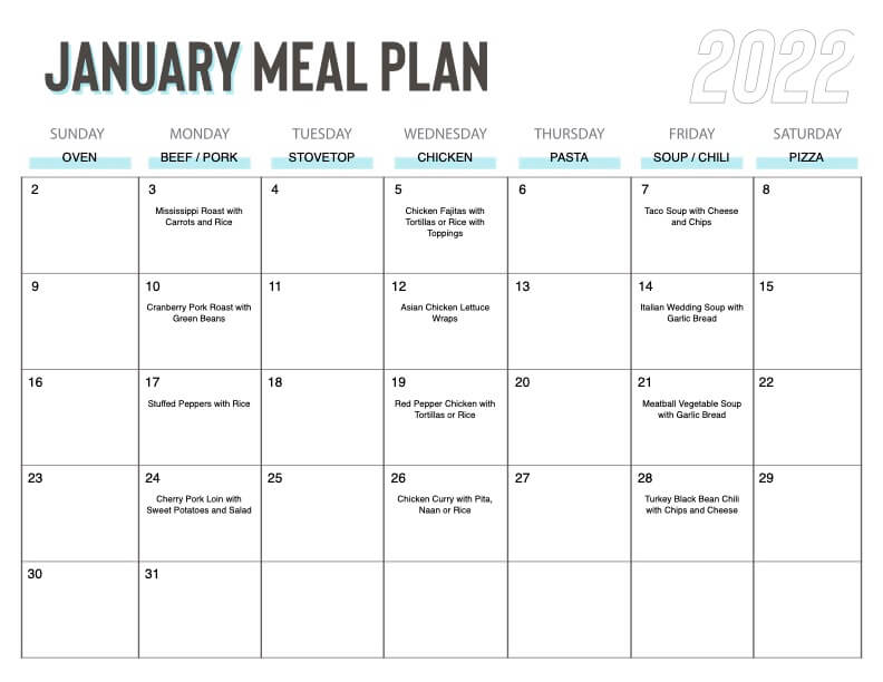 By Kelly McNelisJanuary 1, 2022 Monthly Meal Plan